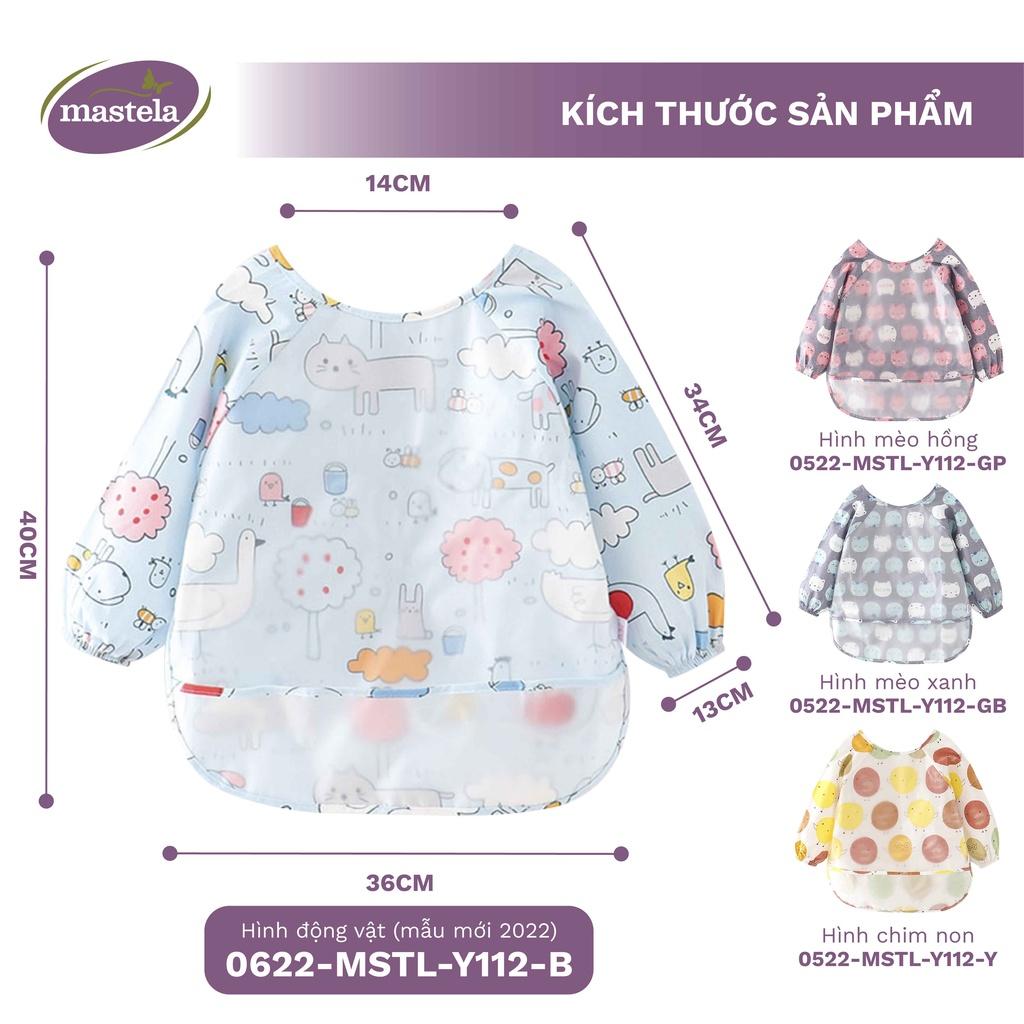 Áo yếm máng dài tay Cotton chống thấm nước cho bé tập ăn, tập vẽ Mastela Bé bước vào giai đoạn ăn dặm không tránh khỏi bị dây bẩn quần áo. Tùy theo như cầu