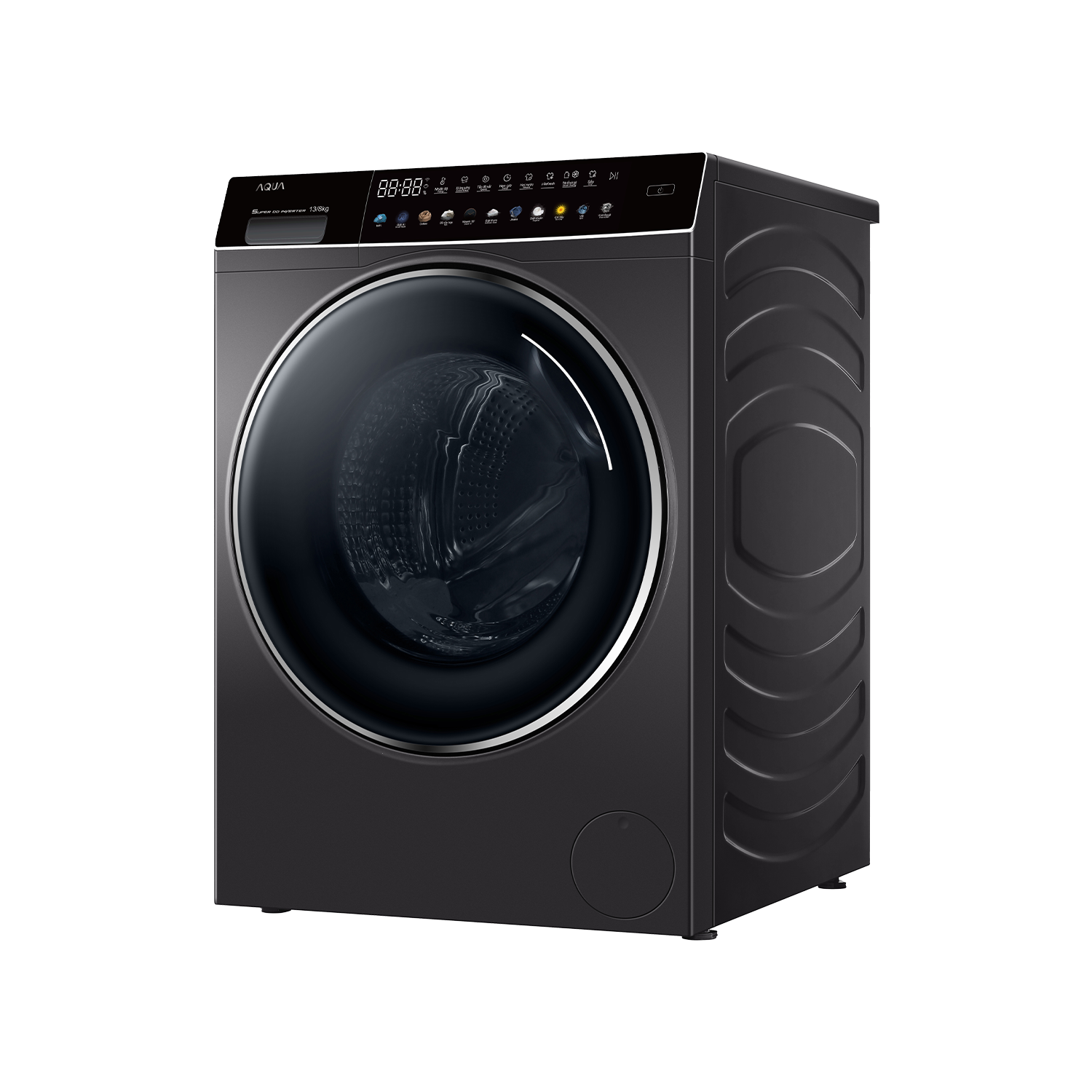 - Với khối lượng giặt 13 kg, máy giặt Aqua đáp ứng tốt nhu cầu giặt giũ của các gia đình có hơn 7 thành viên. Khả năng sấy 8 kg sẽ giúp bạn tiết kiệm thời gian phơi đồ trong những ngày thời tiết ẩm ướt hay mưa, ngăn ngừa quần áo bị ẩm mốc và mùi khó chịu.