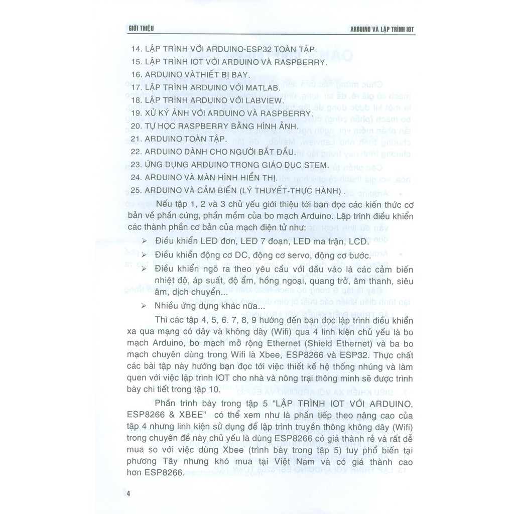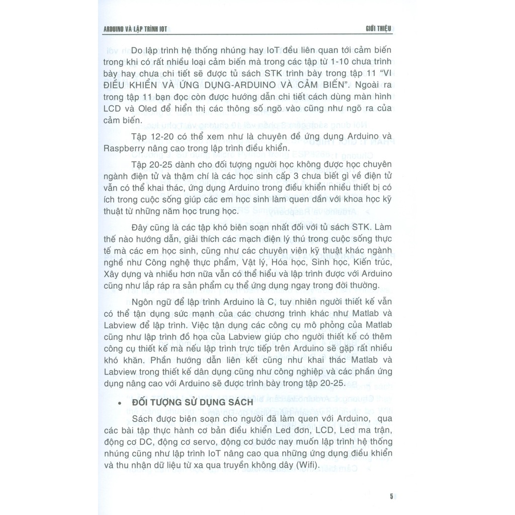 Lập Trình Điểu Khiển Trên Arduino Cho Hệ Vạn Vật Kết Nối (IoT) Cuốn sách hướng đến những người đam mê công nghệ và những ai mới bắt đầu quan tâm đến lĩnh vực IoT