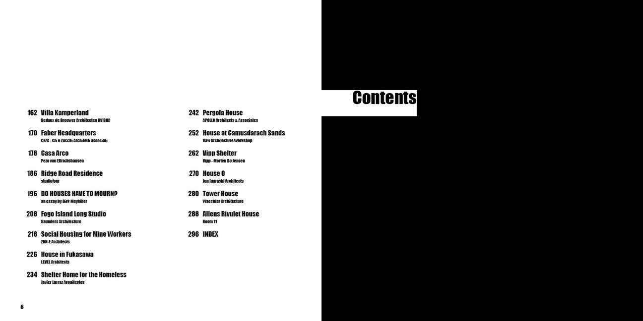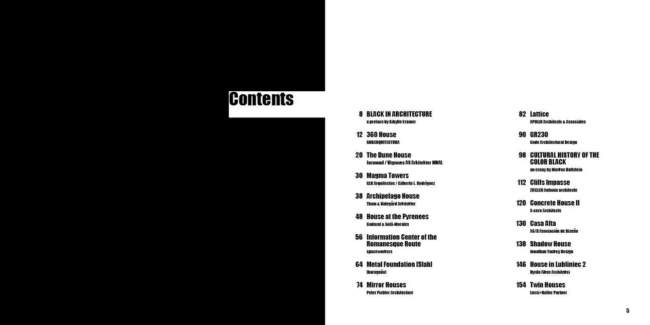 Trong nhiều bối cảnh văn hóa xưa và nay, màu “không màu” này giữ một vị trí đặc biệt: bất kể bối cảnh nào, màu đen luôn được tôn trọng. Điều này cũng đúng với sự tương tác hiện tại và mãnh liệt của các kiến trúc sư và nhà thiết kế với màu sắc này. Các tòa nhà màu đen có vẻ hùng vĩ, tràn ngập hào quang đặc biệt và chiếm ưu thế, nhưng chúng cũng có thể nhấn mạnh môi trường xung quanh một cách chính xác do không có màu sắc. Các dự án được trình bày trong tập này cho thấy rất nhiều cách tiếp cận của văn hóa xây dựng đương đại đối với hiện tượng văn hóa và vật chất hấp dẫn này.