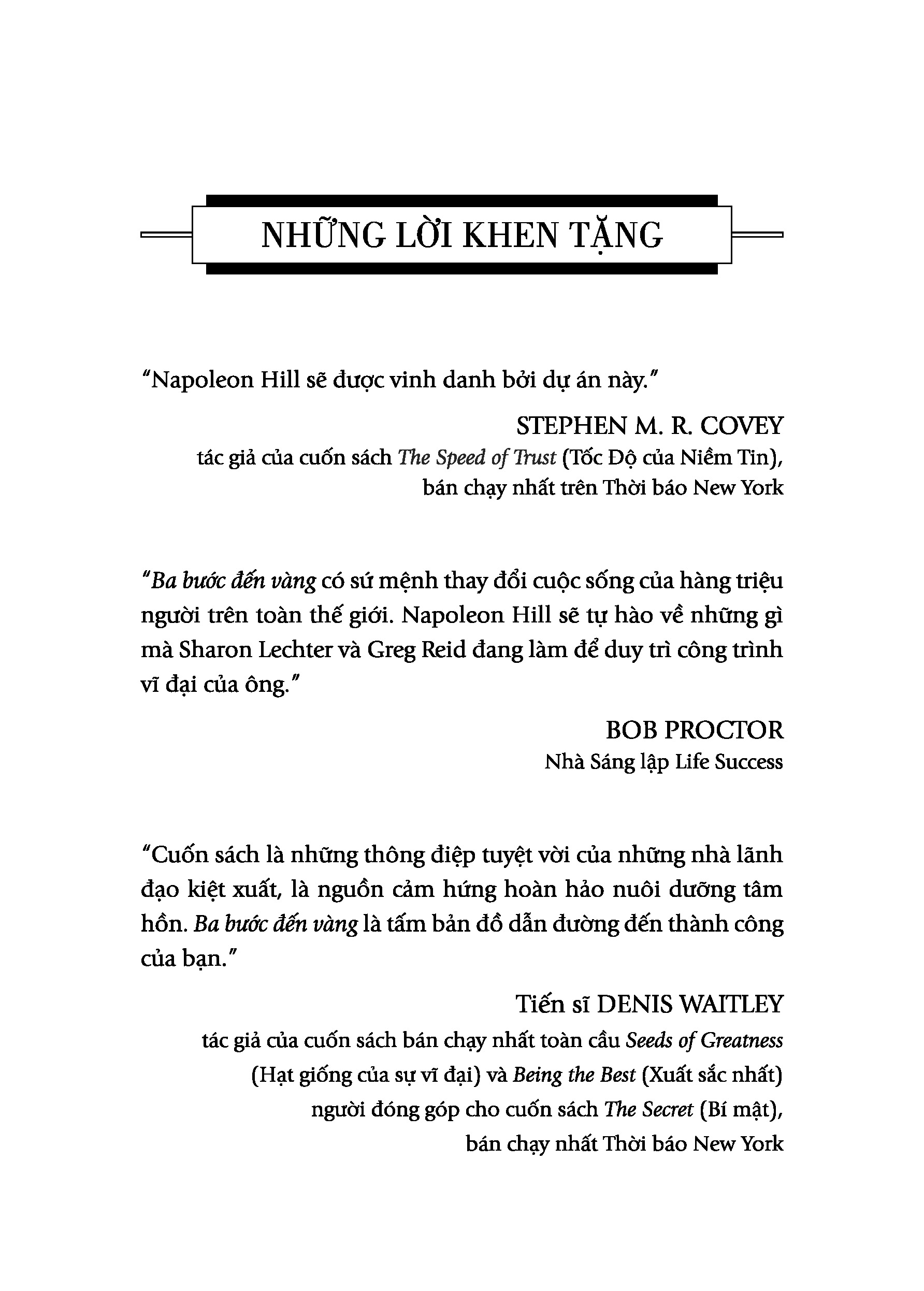 Bạn sẽ làm được nếu bạn tin mình có thể, bạn kiểm soát số phận của chính mình. Cuốn sách Ba bước đến vàng sẽ giúp bạn nhận ra điều đó.