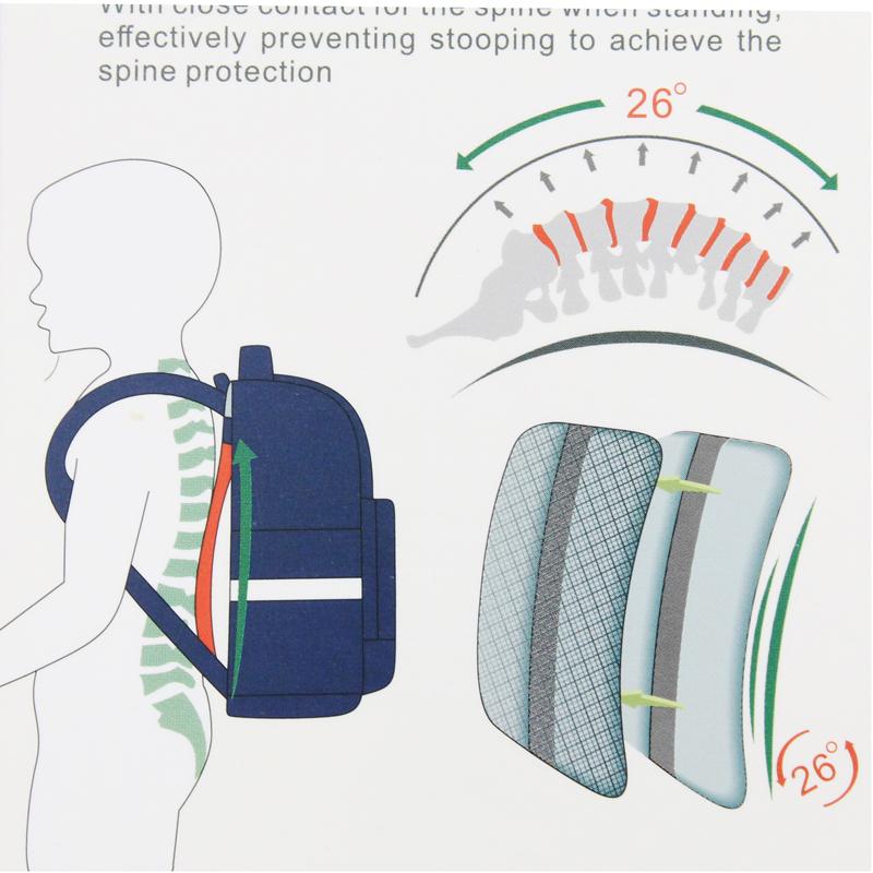 Phần quai đeo thiết kế cong ôm sát phần vai và ngực, có kèm đệm mút êm nên tránh tính trạng xô lệch cặp 2 bên, giảm trọng lực và chống cong vẹo cột sống.