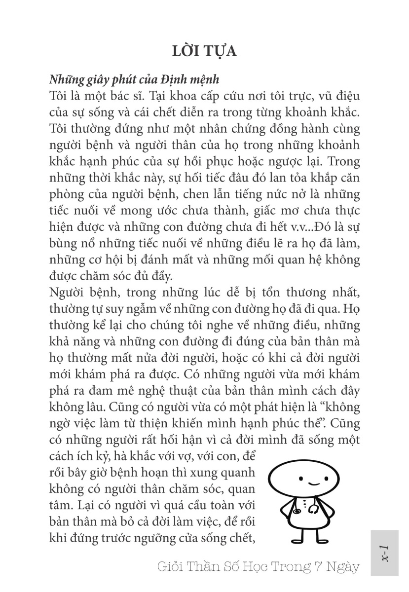 “Tôi là một bác sĩ. Tại khoa cấp cứu nơi tôi trực, vũ điệu của sự sống và cái chết diễn ra trong từng khoảnh khắc. Tôi thường đứng như một nhân chứng đồng hành cùng người bệnh và người thân của họ trong những khoảnh khắc hạnh phúc của sự hồi phục hoặc ngược lại. Trong những thời khắc này, sự hối tiếc đâu đó lan tỏa khắp căn phòng của người bệnh, chen lẫn tiếng nức nở là những tiếc nuối về mong ước chưa thành, giấc mơ chưa thực hiện được và những con đường chưa đi hết Đó là sự bùng nổ những tiếc nuối về những điều lẽ ra họ đã làm, những cơ hội bị đánh mất và những mối quan hệ không được chăm sóc đủ đầy.” (Lời tựa)