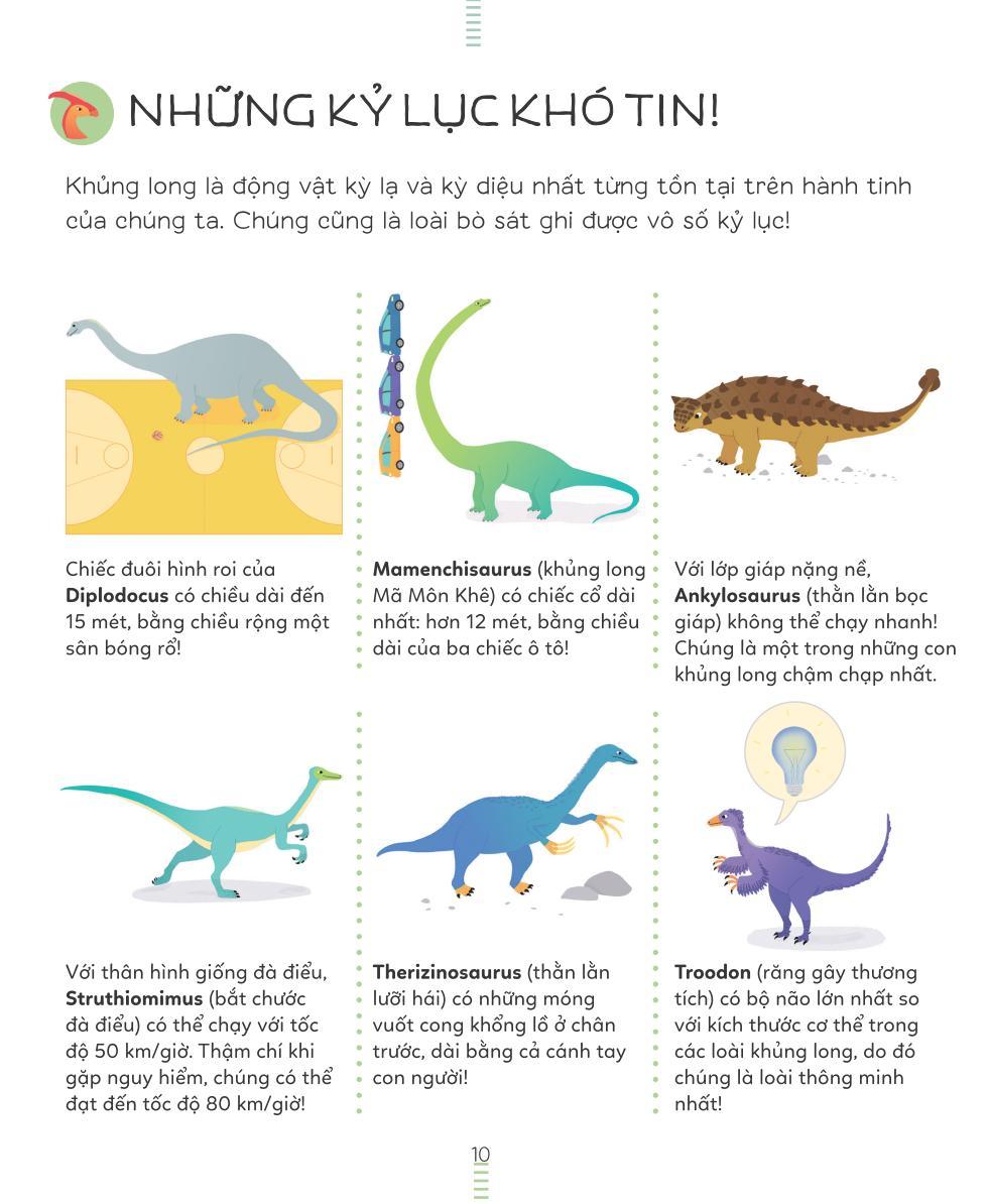 Mua tại TiktokKhủng long không chỉ gồm các loài to lớn xù xì đâu, mà đa dạng và sống động hơn rất nhiều! Em có biết không, có nhiều loài khủng long bé xíu, cũng có những con to cồng kềnh nặng nề, có loài nhanh thoăn thoắt và khéo léo như tên trộm ranh ma, cũng có loài ù lì chậm chạp! Cuốn bách khoa thư sinh động này sẽ giúp em hiểu hết về các loài khủng long - sinh vật cổ đại từng thống trị mặt đất!