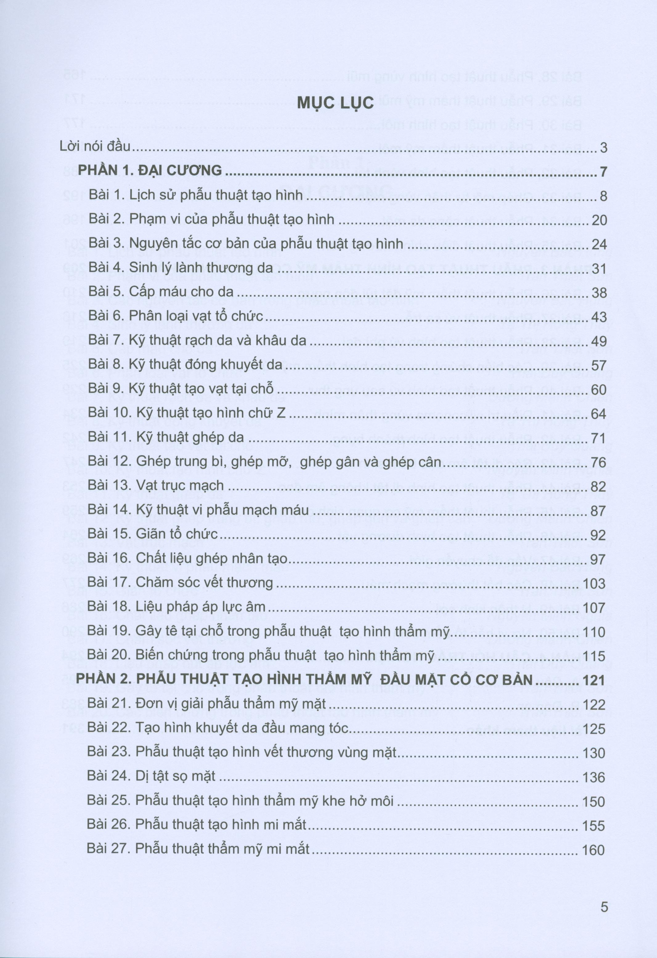 Cuốn sách "Bài giảng Phẫu thuật Tạo hình Thẩm mỹ cơ bản" gồm bốn phần. Phần thứ nhất giới thiệu các kiến thức cơ bản hầu như chưa được giới thiệu trong toàn bộ thời