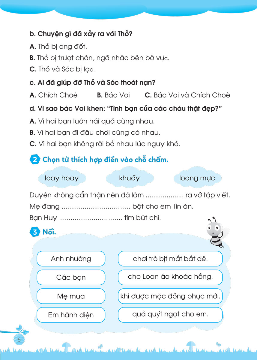 Các bài tập trong phần này được thiết kế sinh động, đầy cảm hứng với rất nhiều các hoạt động nối, tô màu, gạch chân,.. giúp khơi gợi hứng thú học và làm bài tập của các em, đồng thời giúp các em củng cố và nắm chắc các kiến thức đã học.