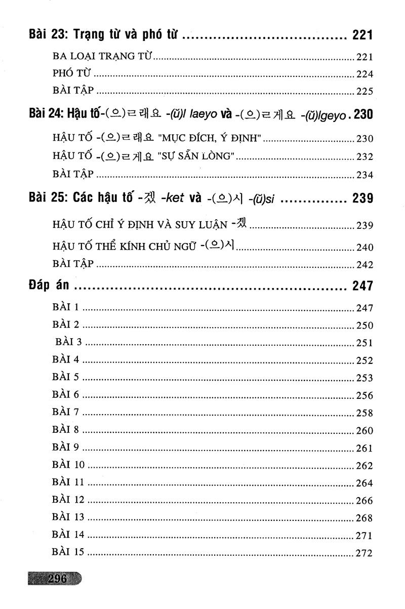 Xuất phát từ nhu cầu đó, đội ngũ biên soạn đã cố gắng tìm tòi và nghiên cứu để có thể mang đến cho bạn đọc một bộ sách học và luyện tập tiếng Hàn một cách chỉn chu nhất. Bộ sách gồm hai quyển: Bài tập ngữ pháp tiếng Hàn - Trình độ căn bản và Bài tập ngữ pháp tiếng Hàn - Trình độ nâng cao, tập trung giải thích các điểm ngữ pháp tiếng Hàn ở cả hai trình độ căn bản và nâng cao cùng những bài tập liên quan để người học có cơ hội luyện tập và củng cố kiến thức của mình về ngữ pháp.