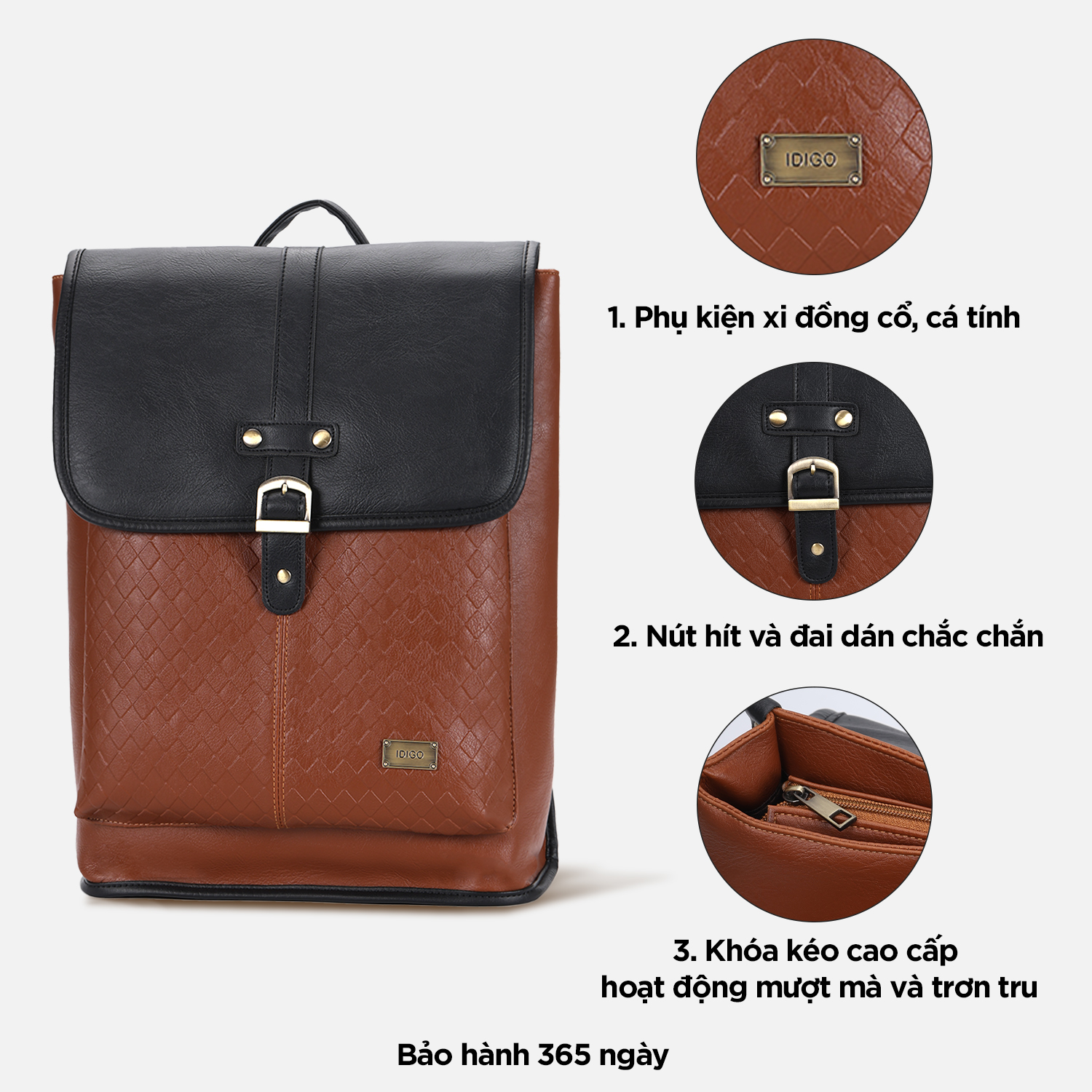 Balo Da Nam Nữ Đựng Laptop 15 Inch Thời Trang Ngăn Trước Khoá Gài IDIGO UBP2 - 6015
