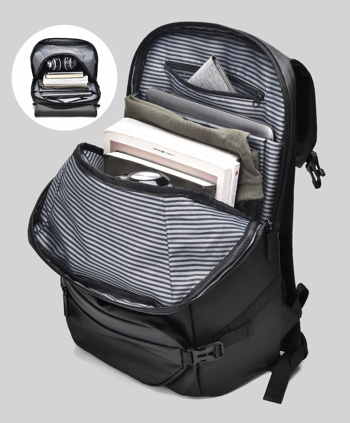 FEATURES - Business backpack with dedicated compartment to protect 15.6" laptop - Spacious U-shaped main compartment opening design increases luggage accessibility - Organized storage in the front compartment keeps essentials neatly organized - Expandable side