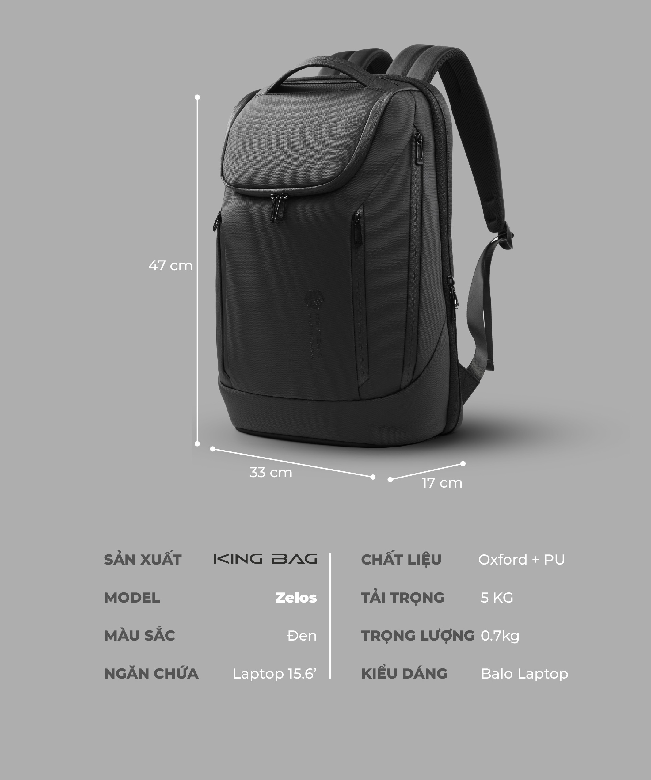 - Balo laptop KINGBAG ZELOS với kiểu dáng sang trọng, thời trang, sức chứa lớn, các ngăn được thiết kế khoa học tiện dụng, phù hợp mang đi làm hay đi du lịch