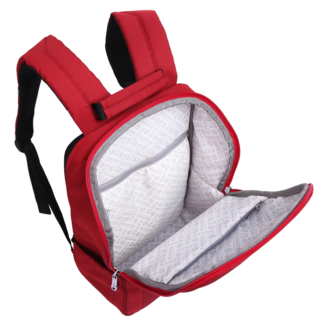 Balo Sakos Frontier có thiết kế với một ngăn chính rộng rãi, trong đó có ngăn để laptop 14 inch chống sốc tốt, khoảng để đồ rộng rãi cho phép mang theo nhiều sách vở tài liệu hoặc khoảng 2-3 bộ quần áo.