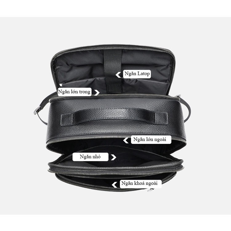 02 Ngăn chính bên trong rộng lớn và có nhiều ngăn nhỏ như khe thẻ, khe cài bút, ngăn khóa nhỏ, ngăn để laptop 15inch…ện lợi giúp bạn để đồ đạc khoa học hơn.