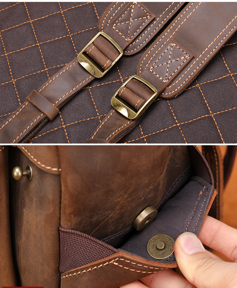 Kích thước : rộng 32cm X cao 47cm X dày 12cm Phương pháp sản xuất: thủ công Chất liệu :Da bò thật 100% Trọng lượng: 1.73kg Màu: Nâu Chức năng: thoáng khí, chống mài mòn,