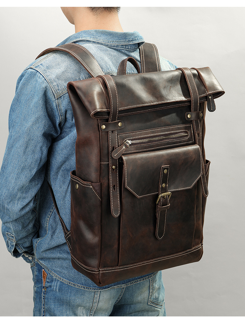 Ba lô nam da bò thật BHM9251 Vừa laptop 13.3inch