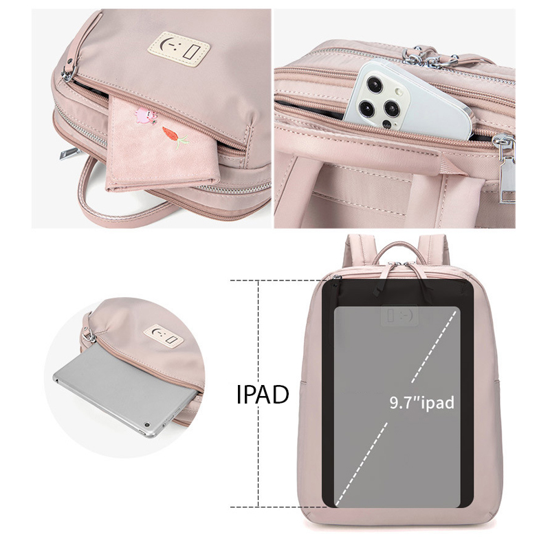 Kích thước : rộng 21cm X cao 29cm X dày 13cm Trọng lượng: 0.4kg Phương pháp sản xuất: công nghệ cao Chất liệu : Vải Màu: Đen, Xám, Kem, Hồng Chức năng: chống mài mòn, dễ làm sáng, chống sốc Thiết kế : trẻ trung ,sang trọng, phong cách dễ thương