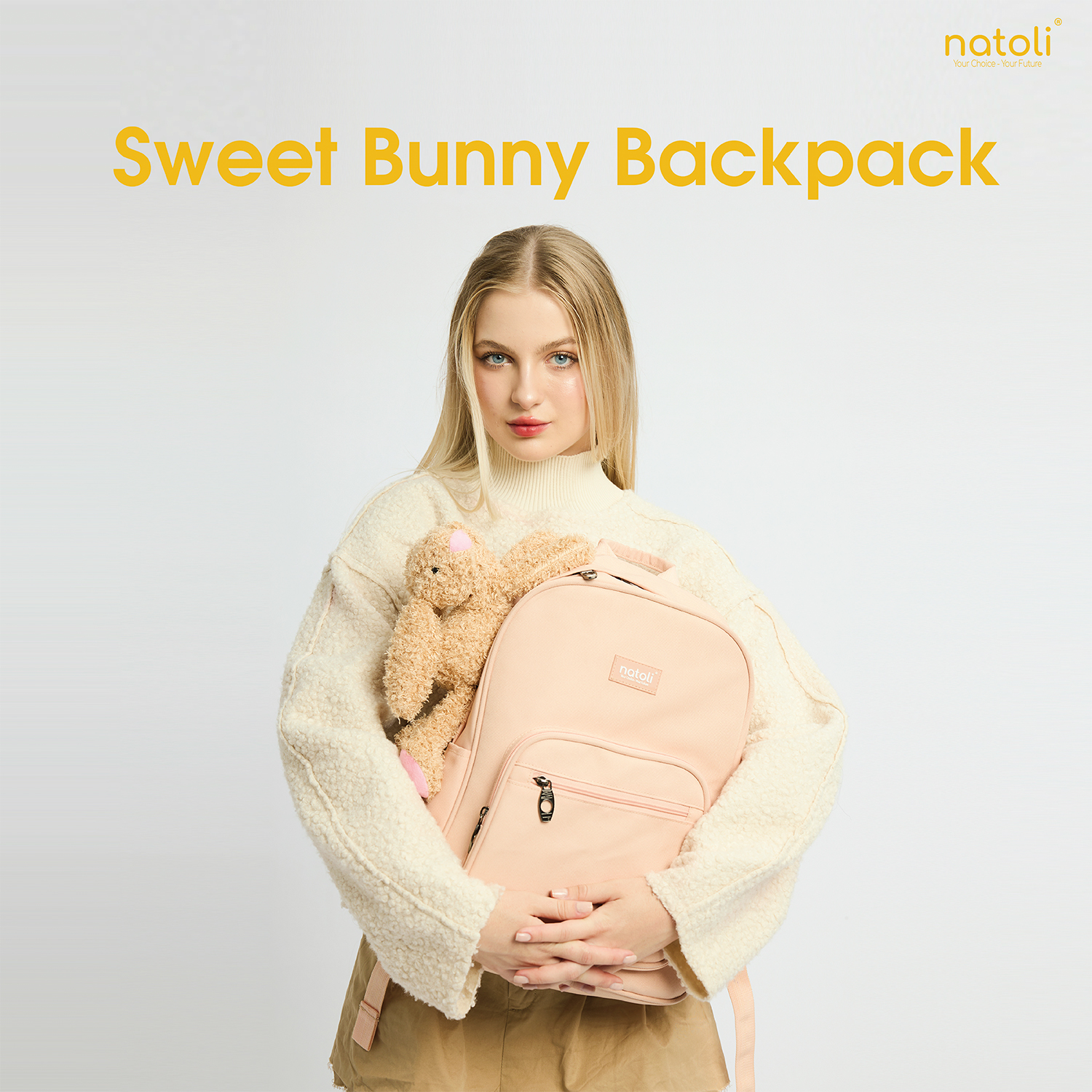 ✨Balo nữ thỏ bông jellycat bunny cao cấp NATOLI nhiều ngăn đi học cute phong cách hàn quốc - BST Sweet Bunny Backpack B28