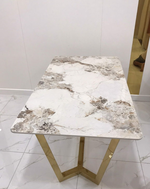 Màu sắc: mặt đá ceramic trắng bóng vân mây/ xanh rêu/pandora, chân inox mạ vàng PVD