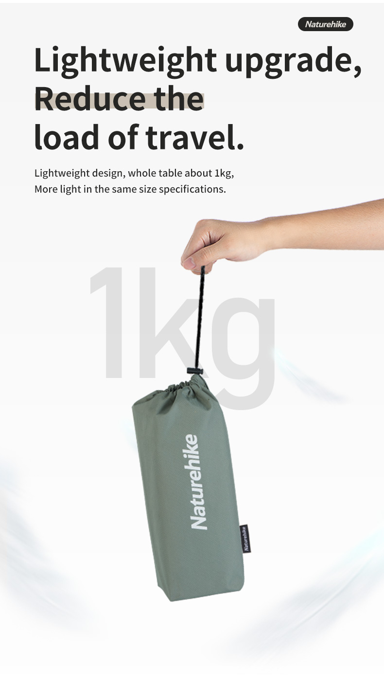 MÔ TẢ SẢN PHẨM - Thương hiệu: NatureHike - Mã sản phầm: NH20JJ020 - Chất liệu: + Mặt bản: Vải Oxford 1680D + Khung bàn: Hợp kim nhôm - Kích thước & Trọng lượng: +