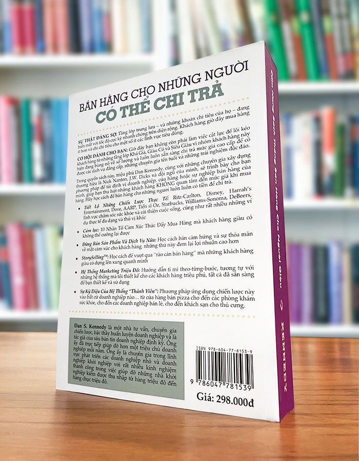 TRong quyển sách Bán Hàng Cho Người Giàu, triệu phú DAN Kennedy, cùng với những chuyên gia xây dựng thương hiệu là Nick Nanton, J.W. Dicks và đội ngũ của mình sẽ trình bày cho bạn phương pháp để tái định vị doanh nghiệp , cửa hàng hoặc sự nghiệp bán hàng của mình , giúp bạn thu hút những khách hàng Không quan tâm đến mức giá khi mua hàng. Hãy đọc cách để bán hàng cho những người luôn luôn có tiền để cho trả.