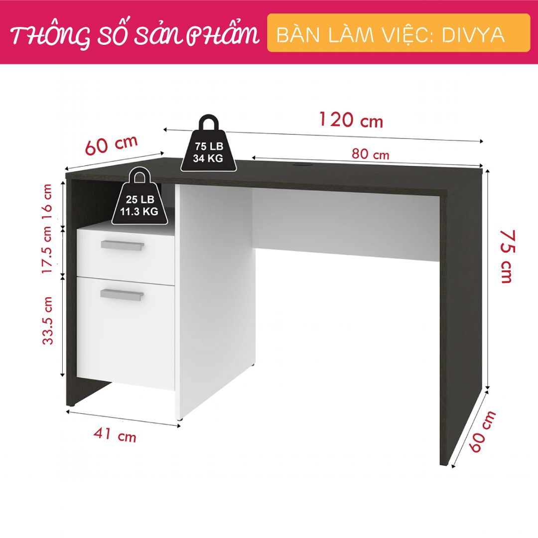 - Kích thước: Dài 120cm x Rộng 60cm x Cao 75cm