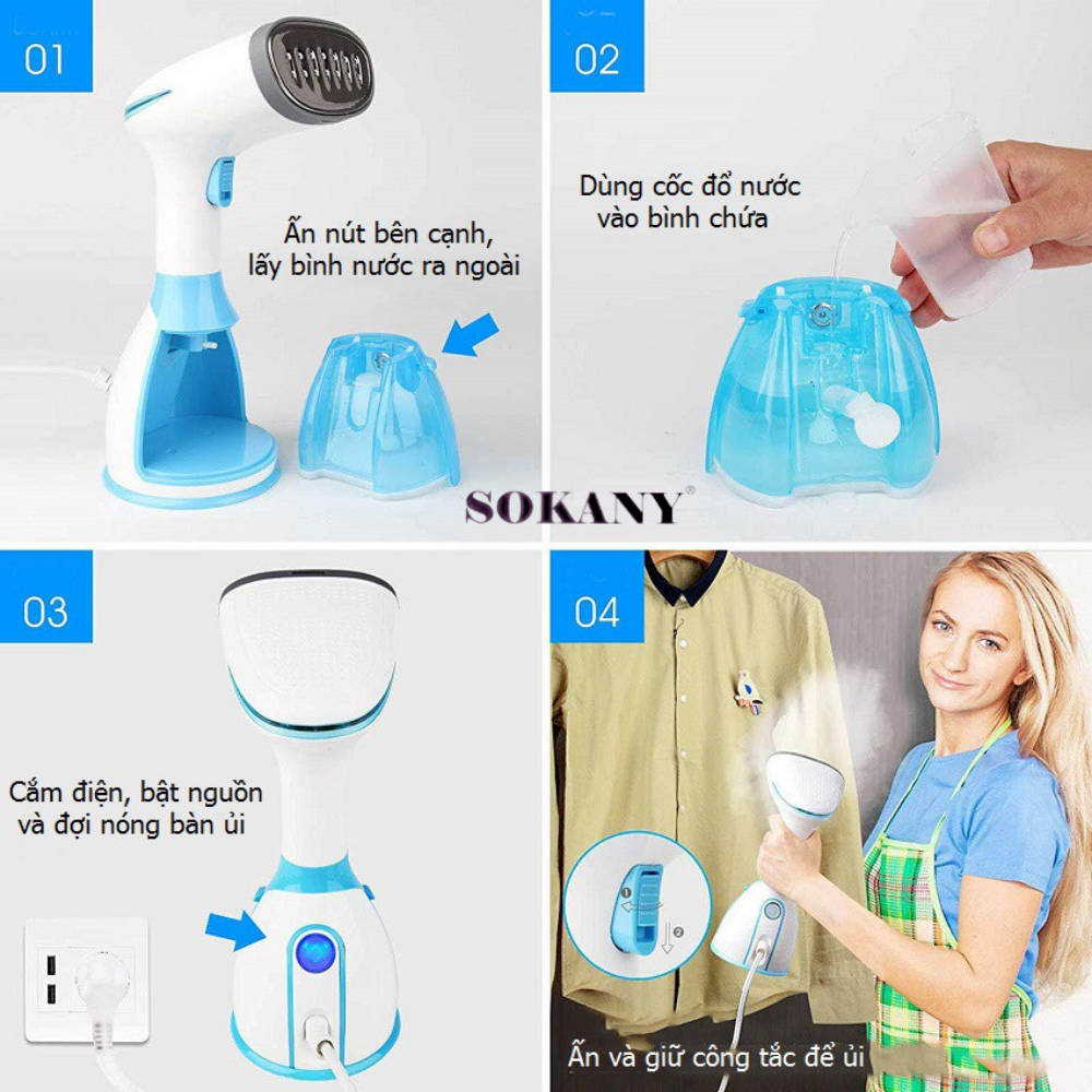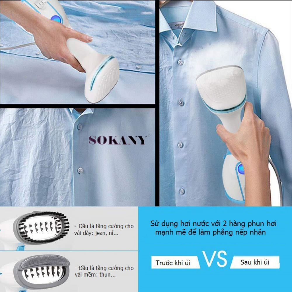 Bàn ủi hơi nước cầm tay không dây cao cấp SoKANY SK-9518 thiết kế đặc biệt chống nhỏ giọt, ủi phẳng mọi loại vải [BẢO HÀNH CHÍNH HÃNG 12 THÁNG - ĐỔI TRẢ TRONG 15