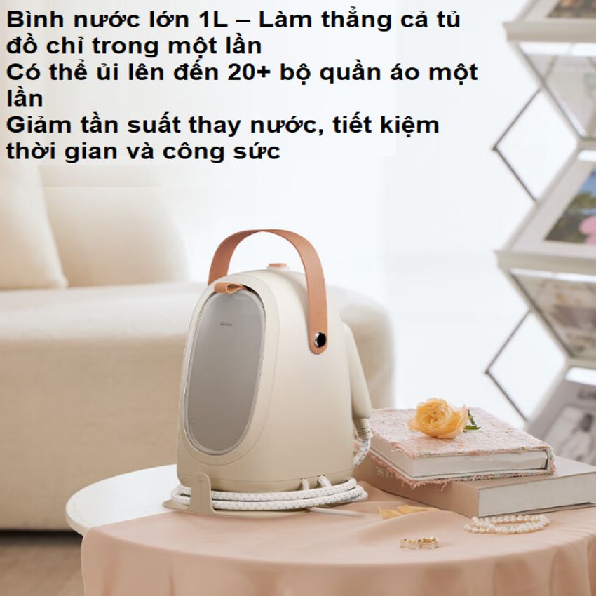 - Không chỉ làm thẳng quần áo, mà còn giúp làm mới đồ vải nội thất, rèm cửa, đồ chơi vải và khử mùi khó chịu bằng hơi nước nóng Tự động tắt sau 5 phút