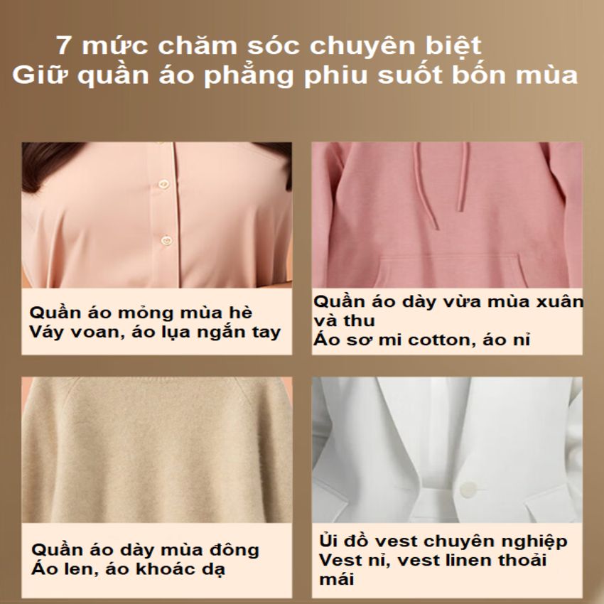 - Dung tích 1L giúp ủi lên đến 20 bộ quần áo trong một lần mà không cần châm nước thường xuyên 7 chế độ riêng biệt cho các loại quần áo khác nhau