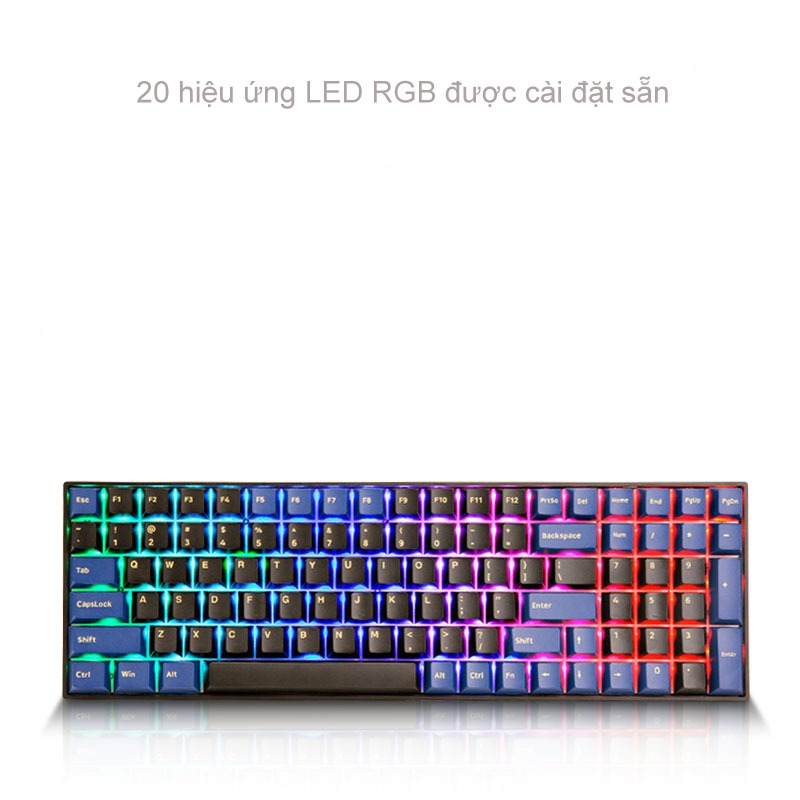 - Giao diện: USB - Số lượng phím: 98 phím - Màu keycaps: Alpha (White + Black) / Beta (Black + White) - Đèn nền: Rainbows - Switch: YH (Blue/Red/Brown) - Keycap: ABS - Antighosting: