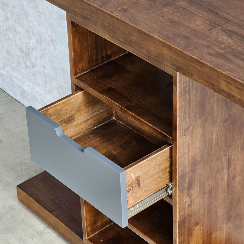 Mua tại TiktokBàn trang trí gỗ CSTCT063 sở hữu kiểu dáng mạnh mẽ với phần mặt gỗ ghép hộp dày 5cm mang đến sự chắc chắn, cứng cáp cho sản phẩm. Với thiết kế 3 tầng kết hợp hộc kéo ở phần giữa bàn giúp bạn tăng không gian trưng bày và lưu trữ các món đồ yêu thích một cách dễ dàng. Gỗ cao su tự nhiên sơn màu góc chó cực đẹp mắt, hoặc bạn có thể yêu cầu màu sắc theo bảng màu HomeOffice. THÔNG TIN CHI TIẾT SẢN PHẨM :