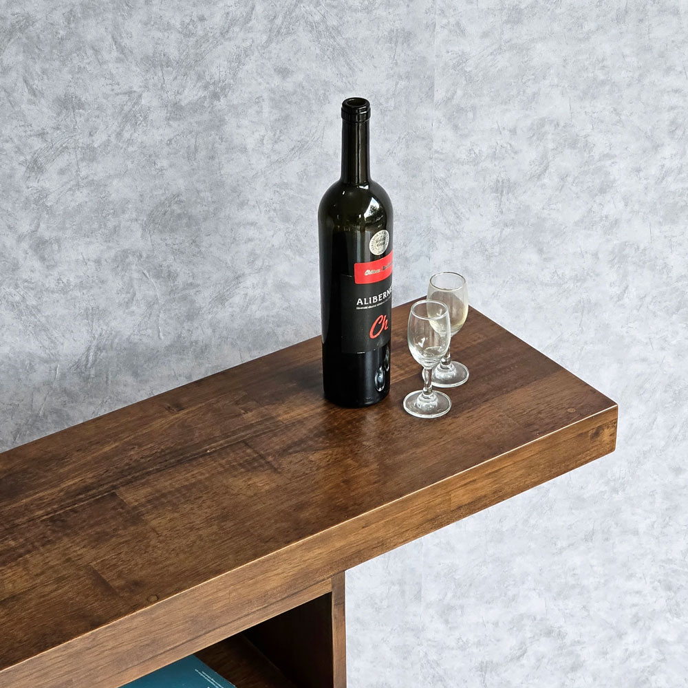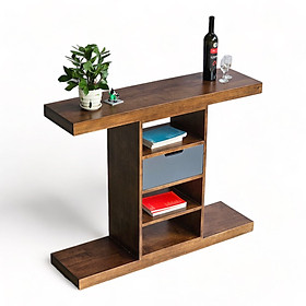 Bàn console, bàn trang trí CST003 với vật liệu chính là gỗ cao su tiêu chuẩn AA dày 17mm được xử lý và hoàn thiện màu gỗ nâu lau đẹp mắt, bề mặt được phủ lớp sơn