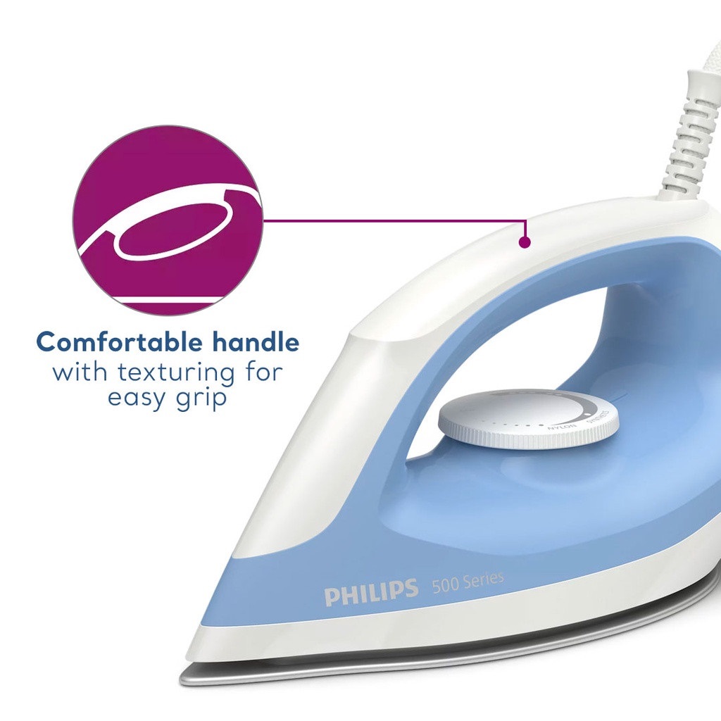 - Bàn ủi khô Dòng 500 mới của Philips có kích thước nhỏ nhất và trọng lượng nhẹ nhất. Thiết kế cực kỳ nhỏ gọn của bàn ủi cho phép ủi dễ dàng và trơn tru, ủi phẳng quần áo mà không tốn nhiều sức.
