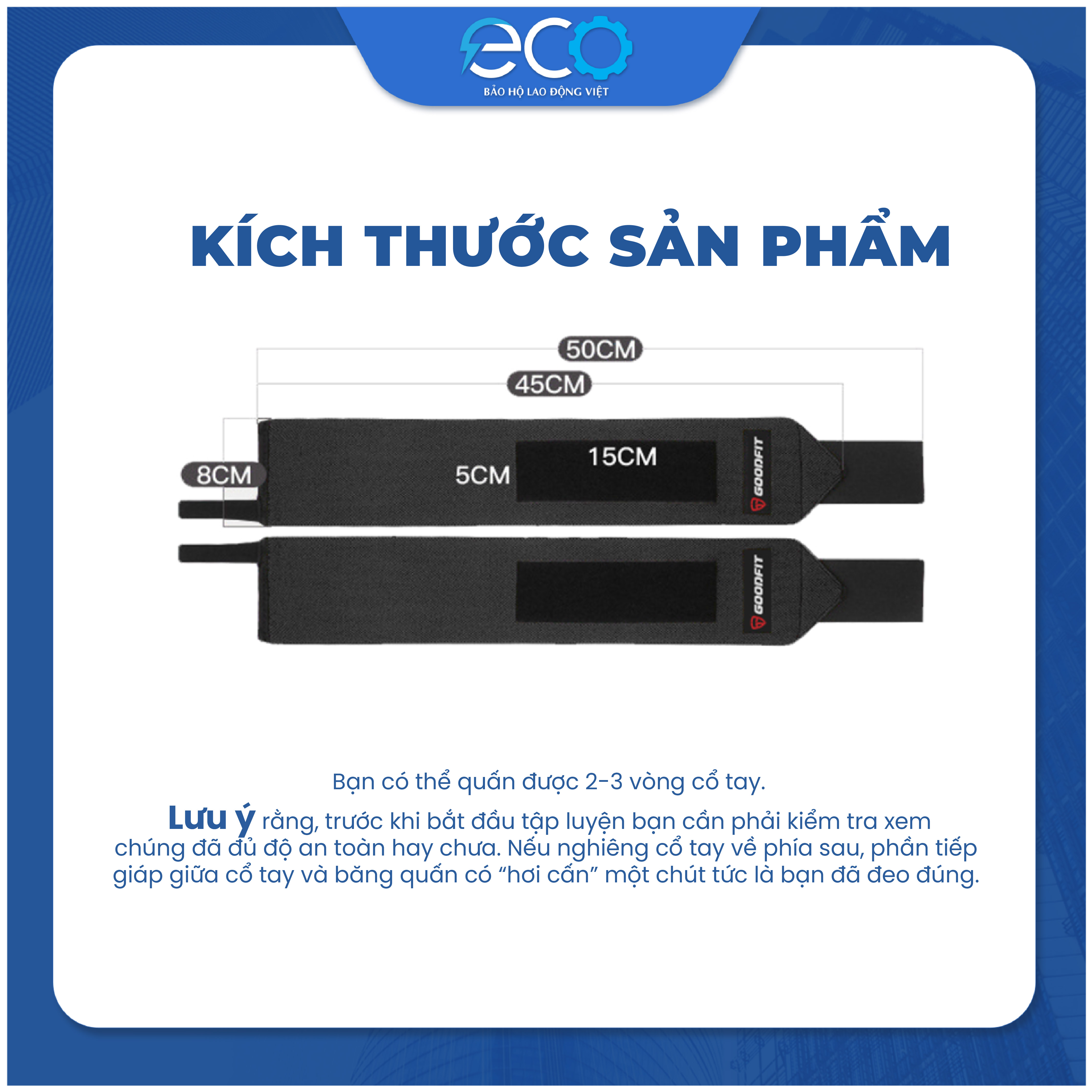 - Kích thước: Bản rộng 8 cm; có thể quấn 2-3 vòng quanh cổ tay để đảm bảo độ chặt chẽ và hỗ trợ tối ưu.