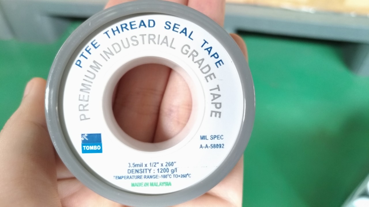 Mua tại TiktokKeo lụa Tombo Malaysia xám hóa chất công nghiệp là PTFE mềm được kéo thành lụa bản ½” dài 6.8 mét dùng chèn kín cho các mối nối ống bằng ren.