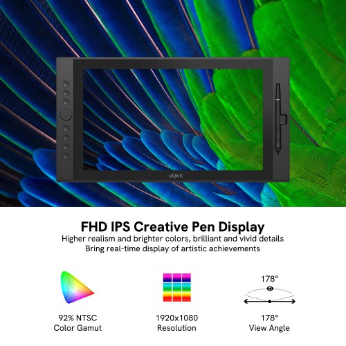 Bảng Vẽ Màn Hình Studio VK1560  Bảng vẽ màn hình VEIKK VK1560 15.6 inch, màn hình HD 1982 x 1080, độ phủ màu 92% NTSC. Góc nhìn 178o cho hình ảnh sống động, sắc nét với trường
