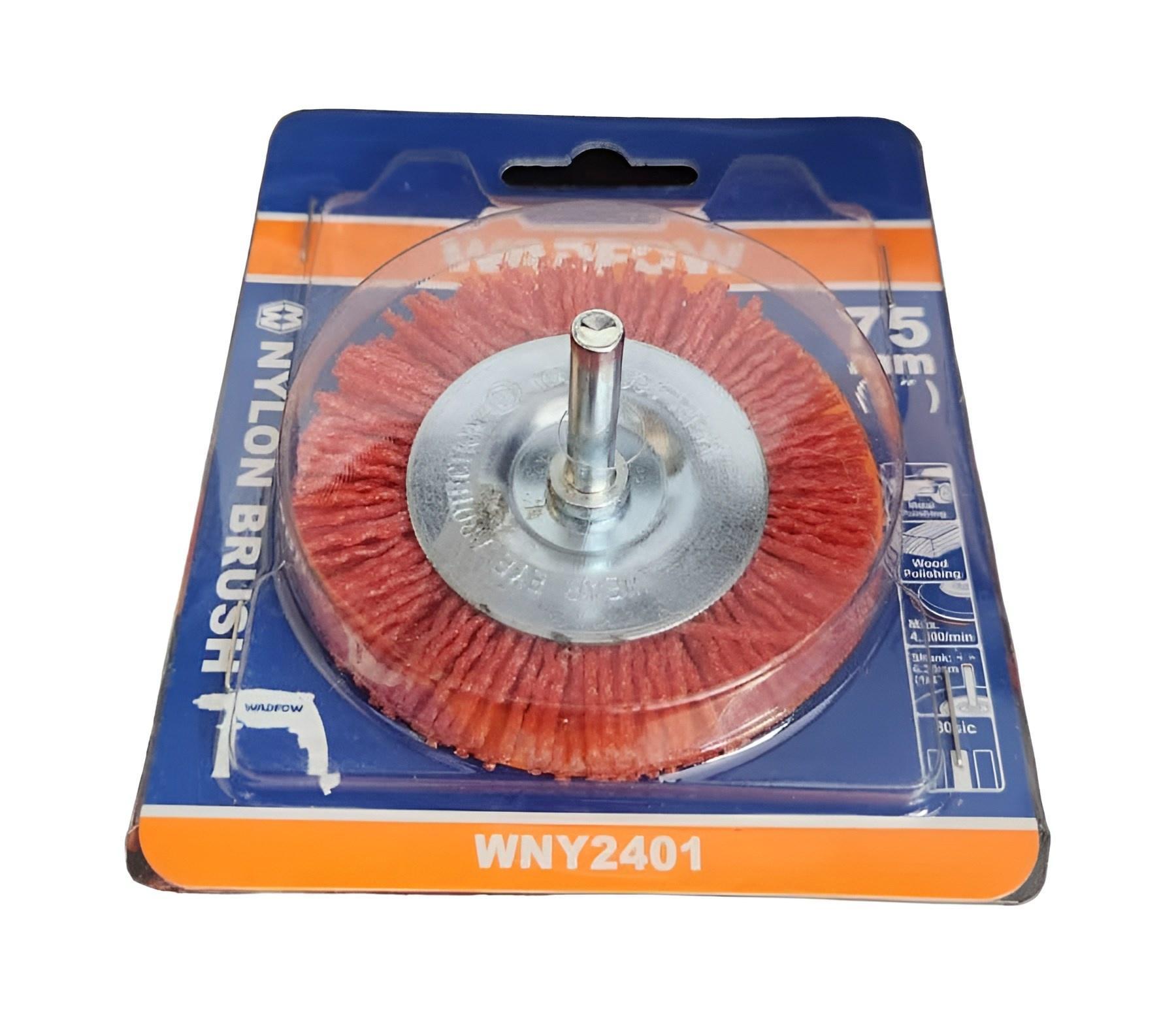 Bánh Cước Nylon 75mm(3") WadFow WNY2401 được sử dụng để làm nhám và tẩy cặn trên nhiều loại vật liệu như thép, thép đúc, thép không gỉ, kim loại màu, nhôm, gỗ mềm và gỗ cứng.