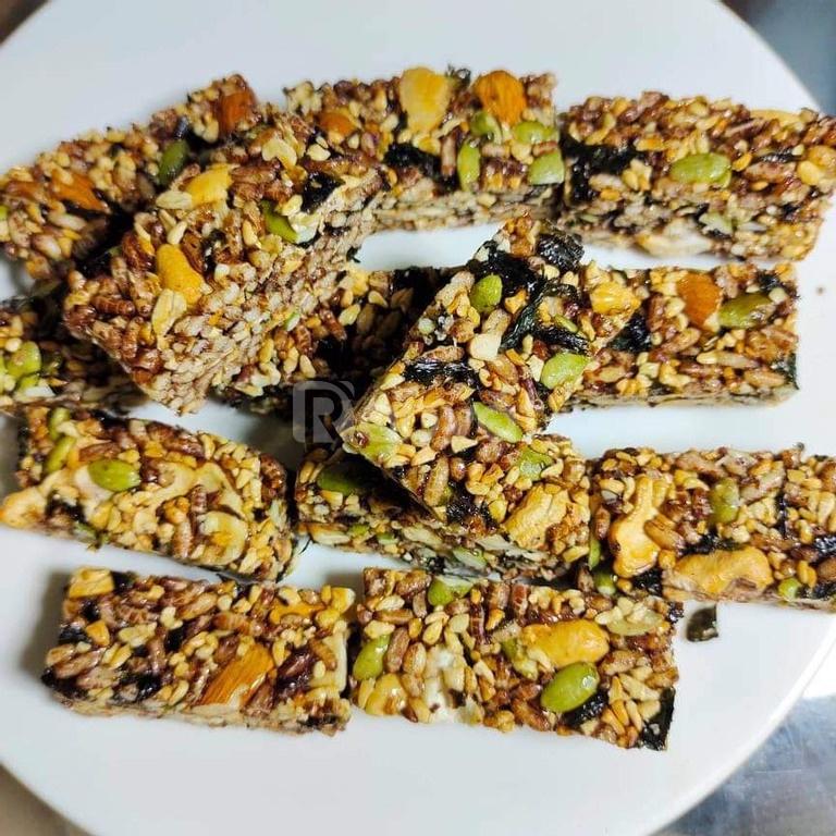 THANH GẠO LỨT MIX HẠT DINH DƯỠNG - Thanh dinh dưỡng được làm từ gạo lứt kết hợp kèm nhiều loại hạt dinh dưỡng cực tốt cho sức khỏe và kết dính với nhau bằng