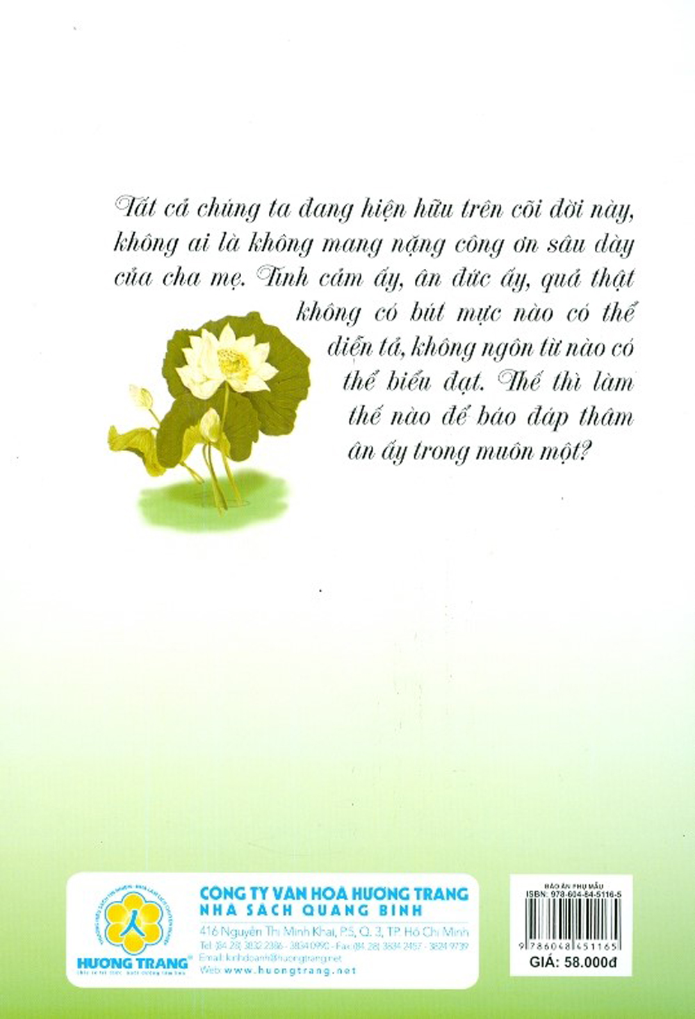 Mua tại TiktokTất cả chúng ta đang hiện hữu trên cõi đời này, không ai là không mang nặng công ơn sâu dày của cha mẹ. Tình cảm ấy, ân đức ấy, quả thật không có bút mực nào có thể diễn tả, không ngôn từ nào có thể biểu đạt. Thế thì làm thế nào để báo đáp thâm ân ấy trong muôn một ?