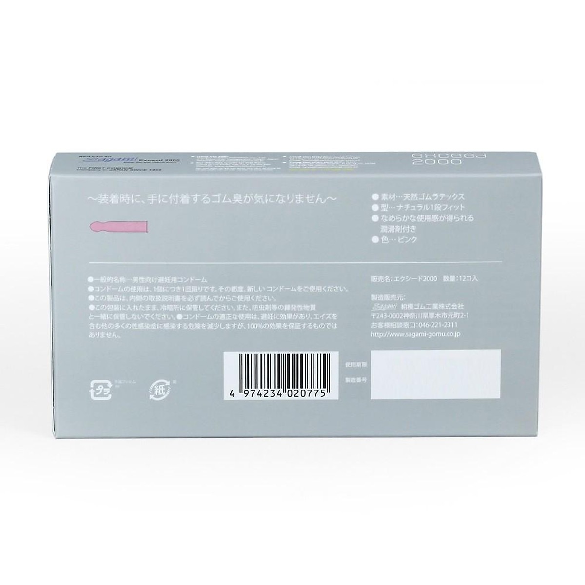 Bao cao su Sagami Exceed 2000 hộp 12 bao thiết kế 3D siêu mỏng một lần thắt chống tuột kéo dài