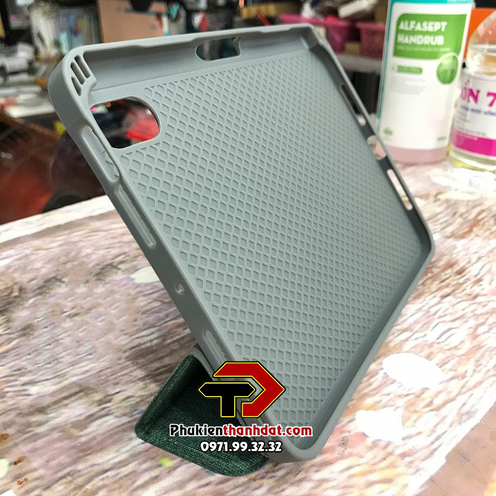 Bao da có phần lưng bằng silicon dẻo ôm sát máy, giúp bảo vệ máy tốt hơn khi va đập, đặc biêt với các ô tổ ong nhỏ bên trọng giúp tản nhiệt cho máy tốt nhất, kèm theo đó là khe đựng bút tiện lợi. Mặt trước bao da được thiết kế dạng vân vải thời trang, tinh tế và đẹp mắt.