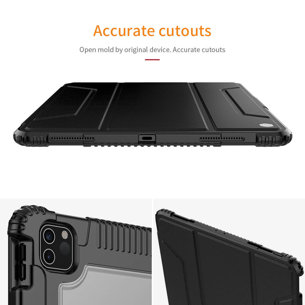 Bao da chống sốc cho iPad Pro 11 2020 hiệu Nillkin Bumber có ngăn đựng bút Với thiết kế chống sốc, bao phủ toàn bộ các cạnh chông sóc bao quanh khung viền máy cho khả năng bảo vệ lên mức cao, giữ nguyên tỉ lệ 1:1 các nút bấm của máy.