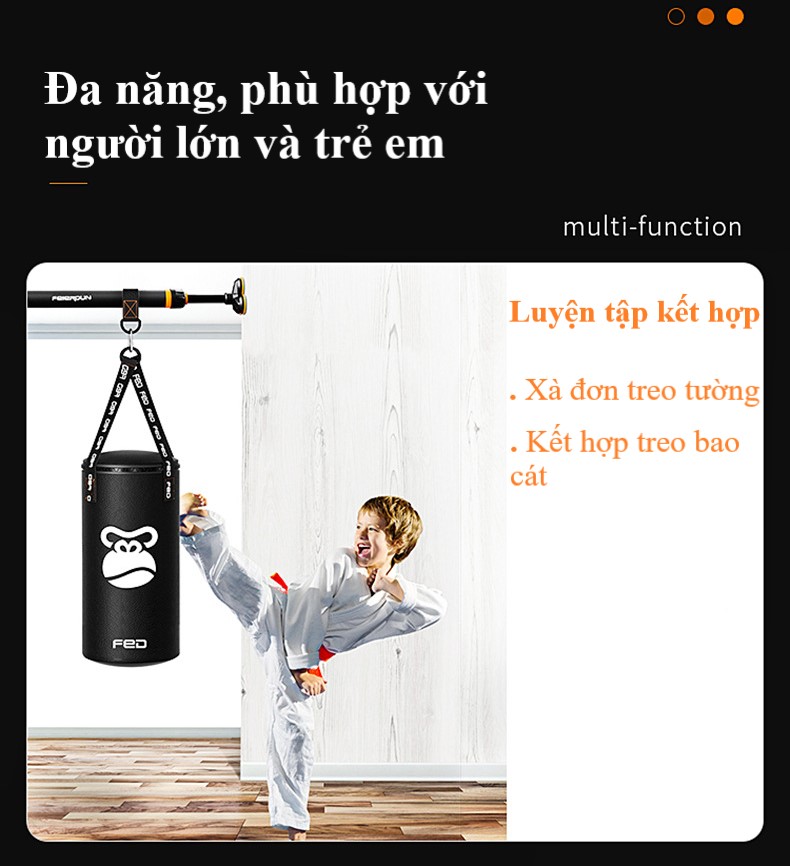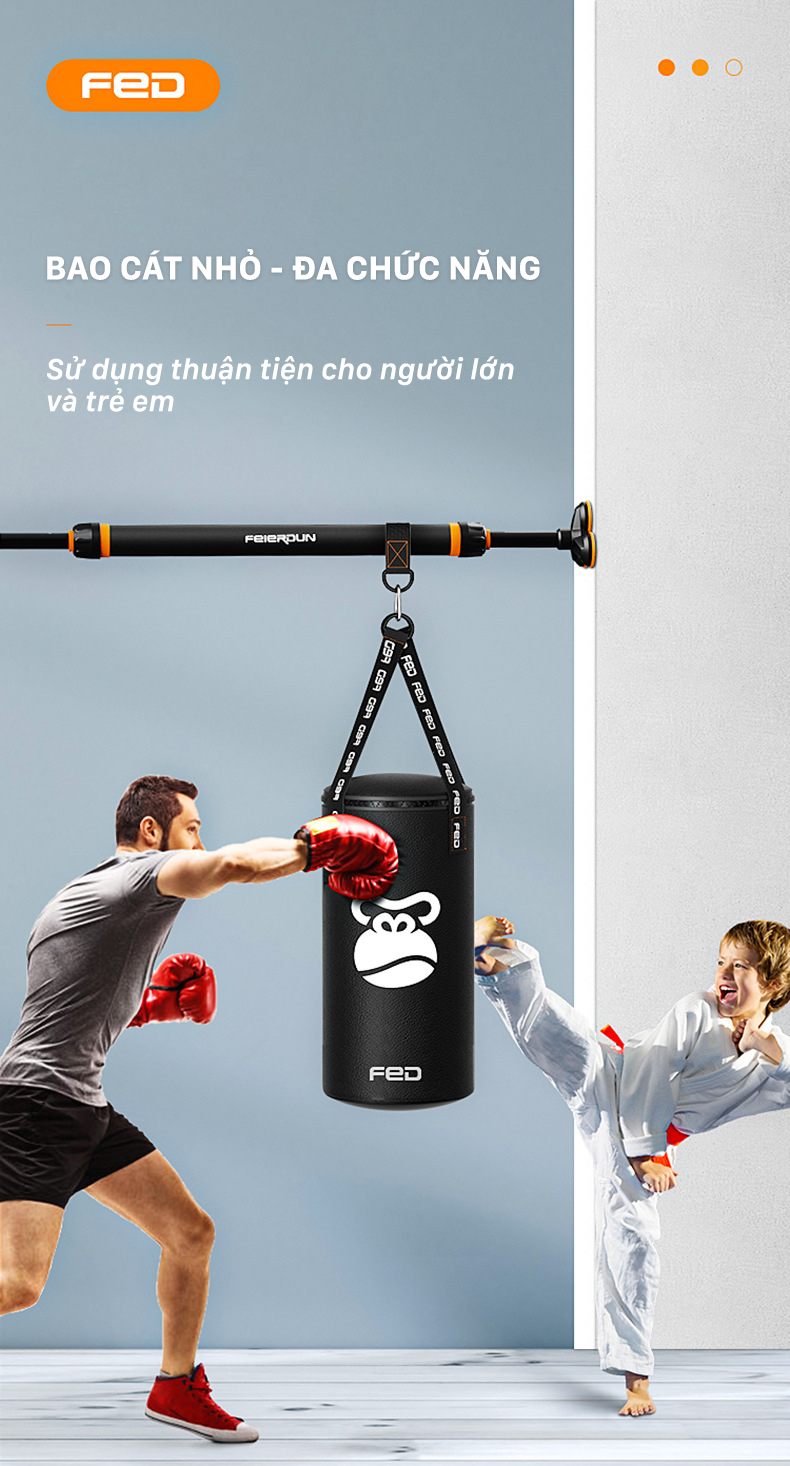 Thông tin sản phẩm Bao cát treo xà trẻ emBao cát treo tường FED-XM0115Ngày nay, mọi người quan tâm nhiều về sự vận động thể chất, càng chăm vận động thì càng phát triển về thể chất và trí thông min...