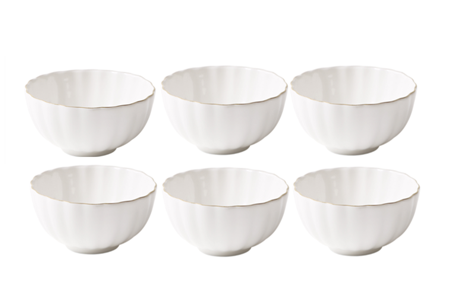 Cotton: là sự liên tưởng nhẹ nhàng đến sợi bông gòn mong manh cùng mới tone màu trắng mang lại cảm giác ấm áp, tinh khiết. Bộ bát ăn “Cotton” cao cấp và thanh lịch thiết kế vừa mang hơi hướng cổ điển vừa mang tinh thần hiện hiện đại với viền mạ vàng.