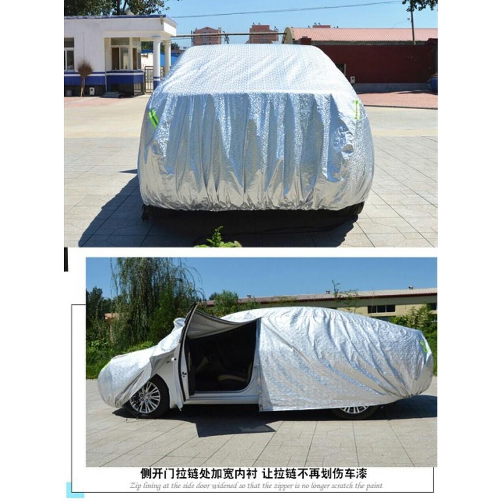 Bạt phủ xe ô tô 7 chỗ 3 lớp tráng nhôm cách nhiệt, chống nóng, chống thấm, chống bụi bẩn - Bạt phủ xe có mặt ngoài là chất liệu vải PEVA tráng nhôm phản