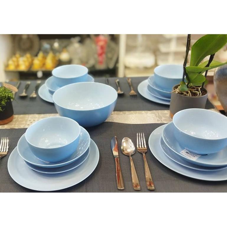 Bộ 6 chén bát đĩa thủy tinh Luminarc P9203 – Xanh dương (Light Blue) Mô tả sản phẩm: Bộ chén bát đĩa thủy tinh trắng Luminarc mang kiểu dáng sang trọng, tinh tế, góp phần