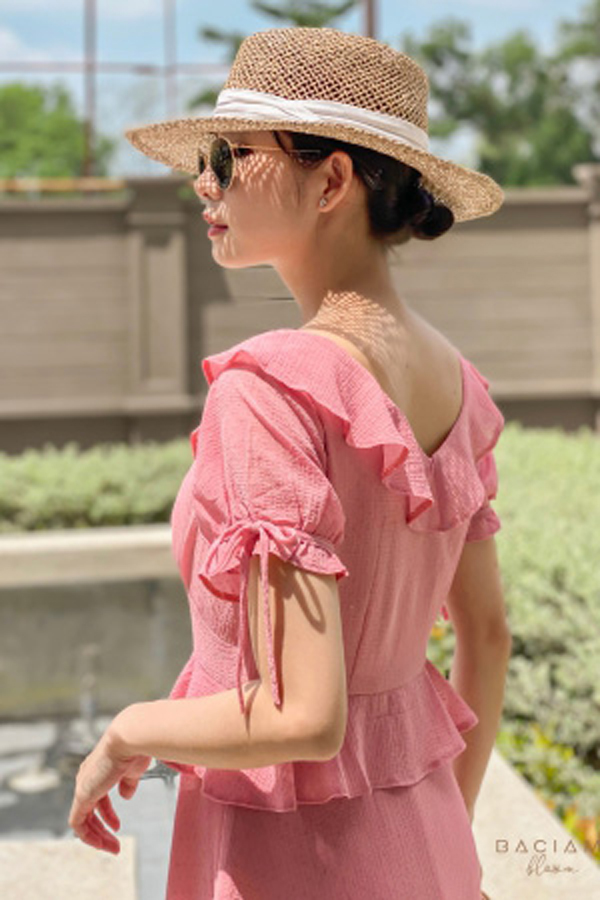 ღ THÔNG TIN SẢN PHẨM: Tên sản phẩm: Đầm hồng cổ yếm tay phồng Chất liệu: Chất gân ý Chi tiết sản phẩm: không lót Thông số size: S, M, L,
