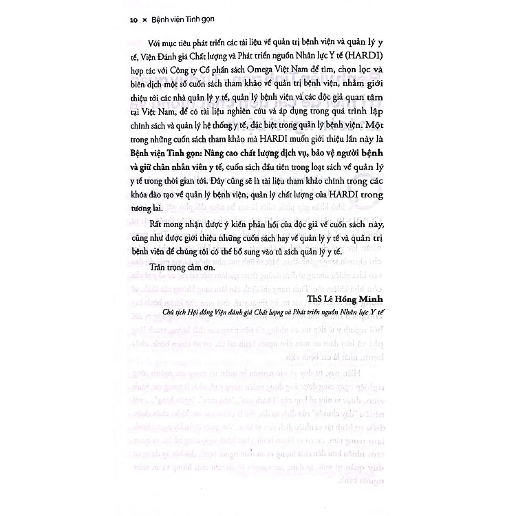 • Giữ đúng tinh thần của tư duy Tinh gọn, nội dung cuốn sách được viết ra không nhằm mục đích áp đặt cách xử lý vấn đề lên hệ thống y tế. Điều tác giả mong muốn là thông qua những ví dụ và phân tích của cuốn sách, những người đang làm việc trong hệ thống y tế sẽ hiểu về phương pháp Tinh gọn, cách các phương pháp Tinh gọn có thể được sử dụng để giải quyết một số vấn đề, sau đó đưa ra giải pháp phù hợp với thực tế cho chính nơi mình đang làm việc.