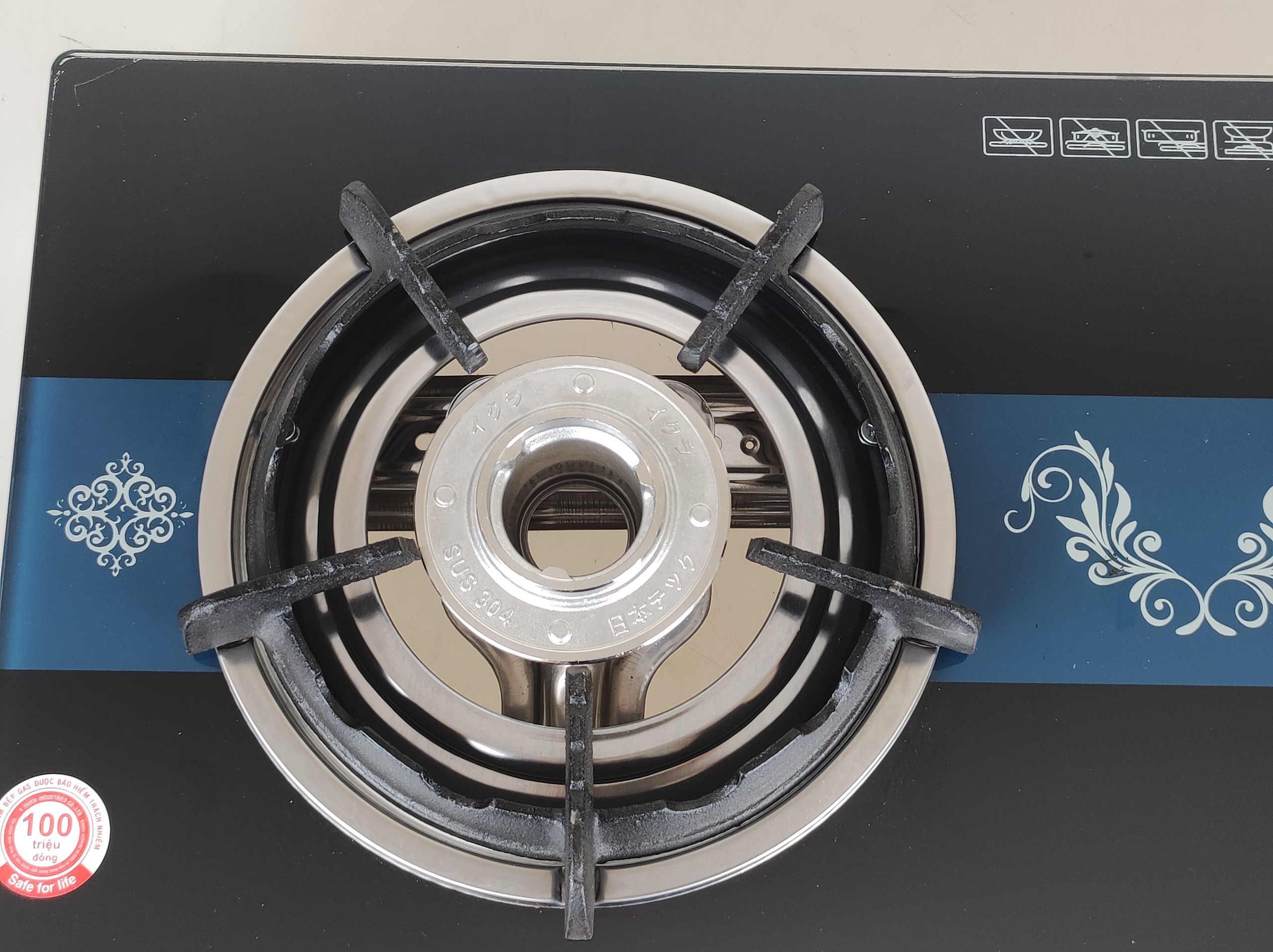 * Mặt kiếng cao cấp chịu lực, chịu nhiệt, thiết kế hoa văn sang trọng; - Thân bếp bằng inox, cao 100 mm; - Kiềng thép sơn tĩnh điện, có chắn gió; - Điếu loe