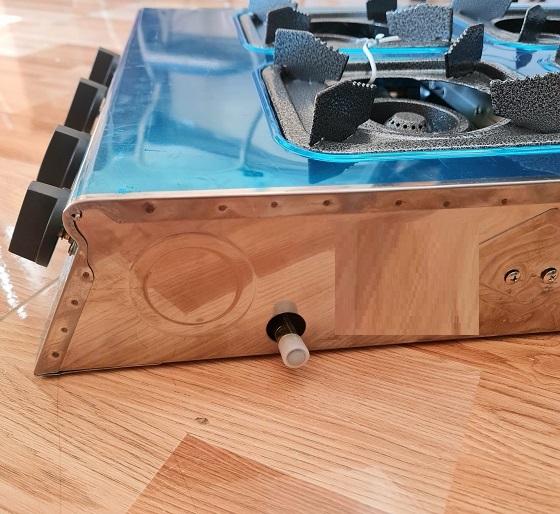 Thông số kĩ thuật : -Kích thước :(Dài 700mm-Cao 60mm-Rộng 420mm) -Mặt kính cường lực. -Thân Sơn tĩnh điện -Nẹp Decal -Kiềng sắt tráng men 3Ly. -Đồng Vàng -Đánh lửa Mageto.