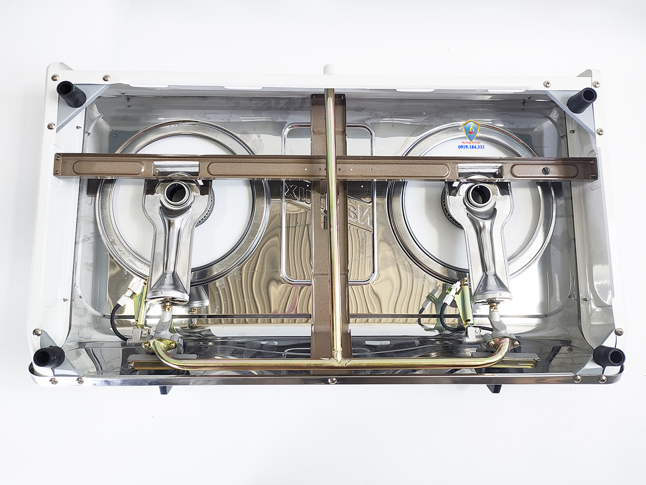* Mặt kiếng cao cấp chịu lực, chịu nhiệt, thiết kế hoa văn sang trọng; - Thân bếp bằng inox, cao 100 mm; - Kiềng thép sơn tĩnh điện, có chắn gió; - Điếu loe