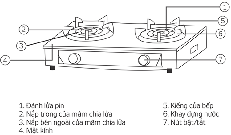 Chi tiết sản phẩm - Khung toàn thân Inox sọc (mờ) + nẹp Decan, - Mặt kính 7Ly -Cường Lực,chịu nhiệt. - Đầu Đốt đồng mũ nguyên khối cho lửa xanh. - Kiềng Gang chắn